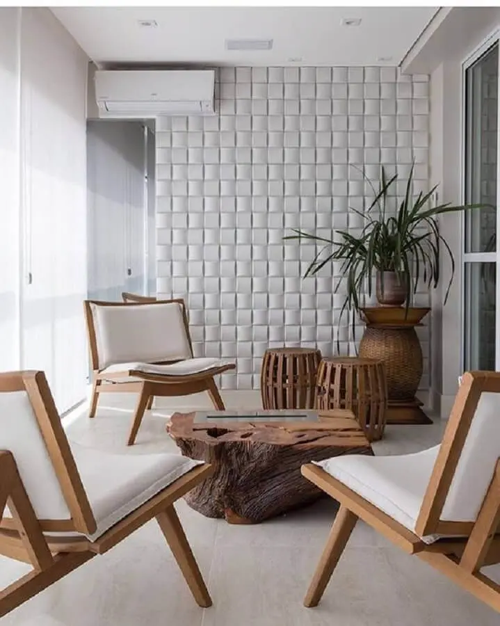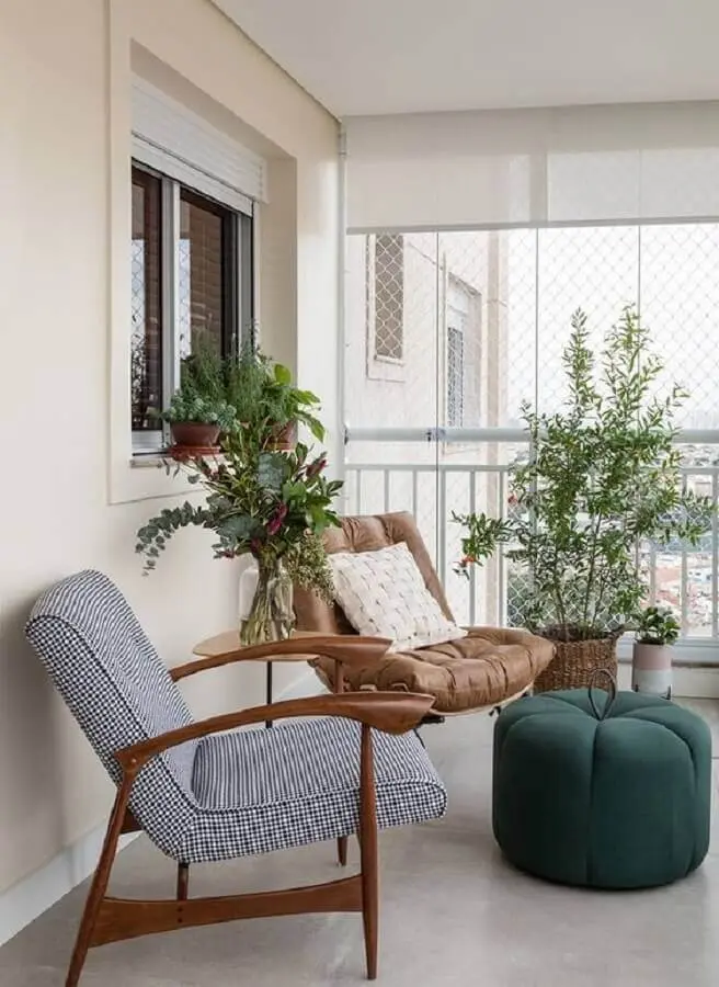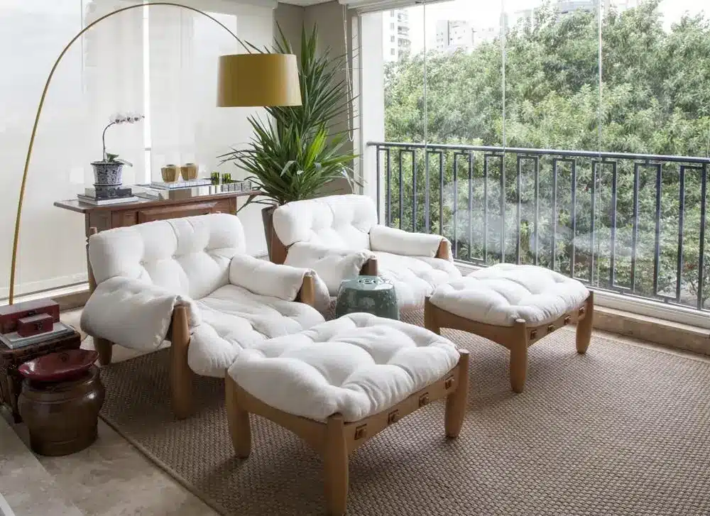 É possível decorar com poltronas e cadeiras em varandas, pois muitas pessoas adoram sentar e conversar com a família ou amigos, como alternativa, as pessoas podem ler ou simplesmente relaxar.