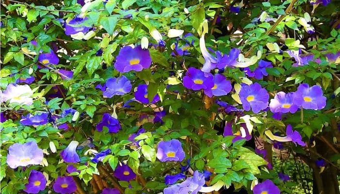 Tumbergia é um pequeno arbusto. Originalmente, era encontrada apenas na América do Sul, mas agora pode ser encontrada em muitos lugares como planta de interior.
