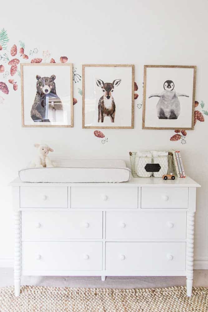 Pense nos itens essenciais que você precisará manter na cômoda, como fraldas, roupas, lenços umedecidos, cremes e outros acessórios.