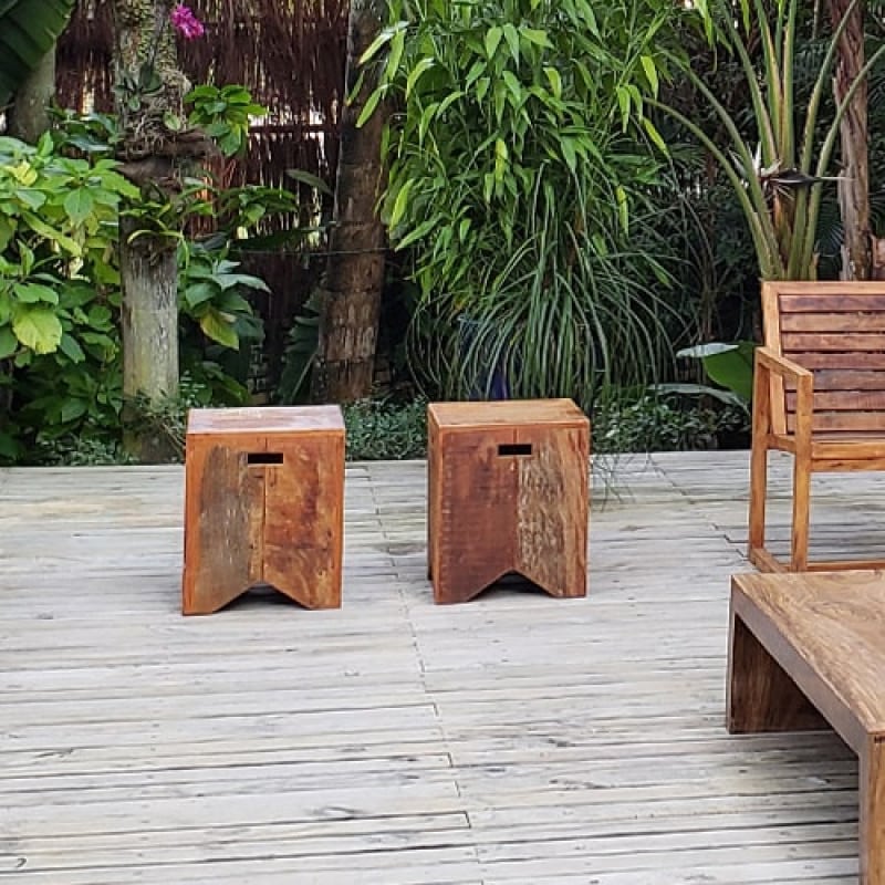 Alguns exemplos de móveis produzidos em Madeira de Demolição:
