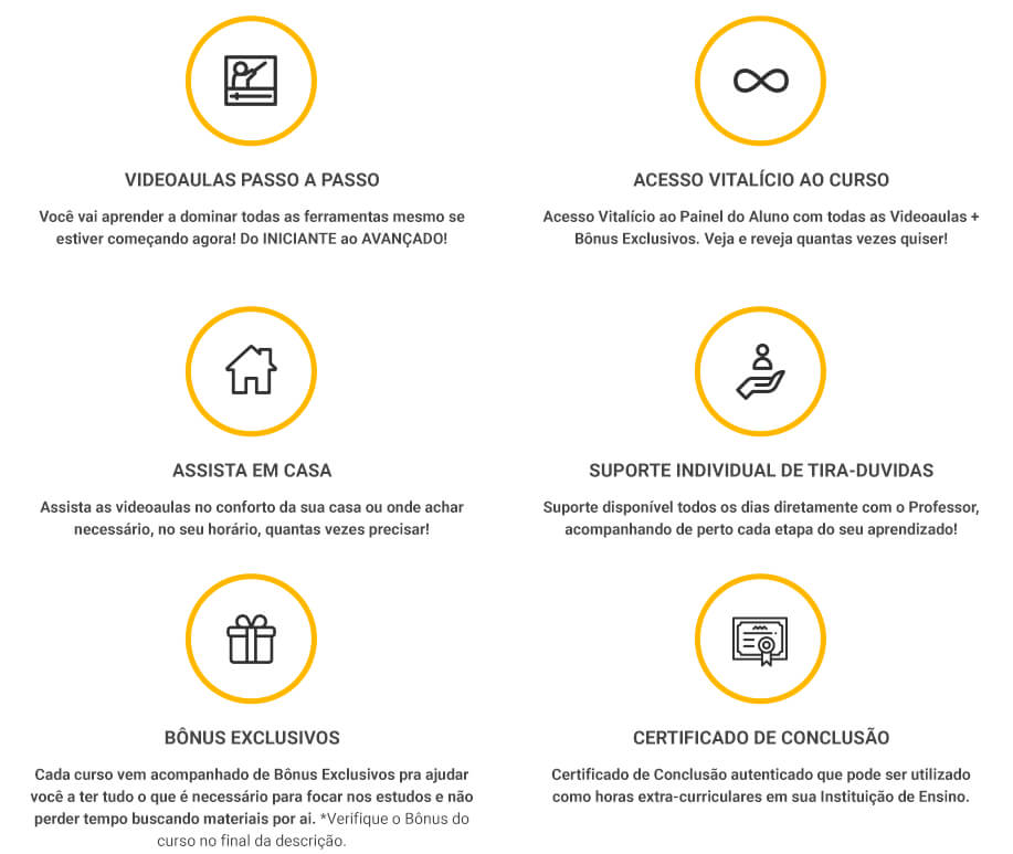 Além disso, você terá mais 2 cursos e conteúdos de bônus, listados a seguir: