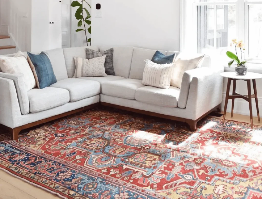 Um tapete pode ser usado para adicionar cor e padrão a um espaço ou para complementar a paleta de cores existente.