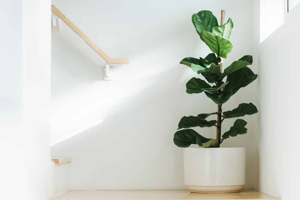 Se você gosta do estilo moderno de meados do século, considere plantas grandes como figueiras ou seringueiras. Emparelhe-os com plantadores altos para completar o visual.
