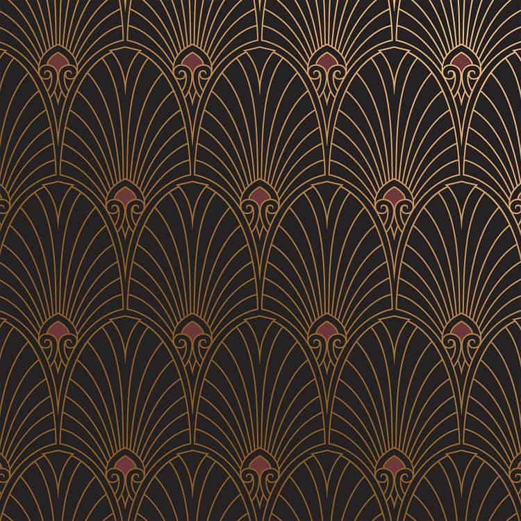 Um design típico de papel de parede art déco incorpora os padrões icônicos e luxuosos da década de 1920 e dá a eles um toque moderno.
