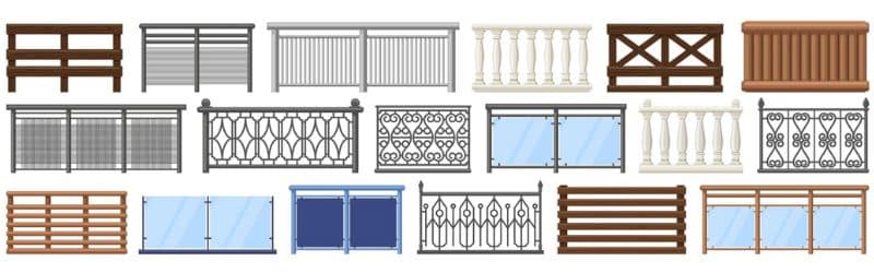 Diferentes materiais podem ser usados para fazer um corrimão ao longo das escadas: ferro, aço, mármore, bambu e madeira.