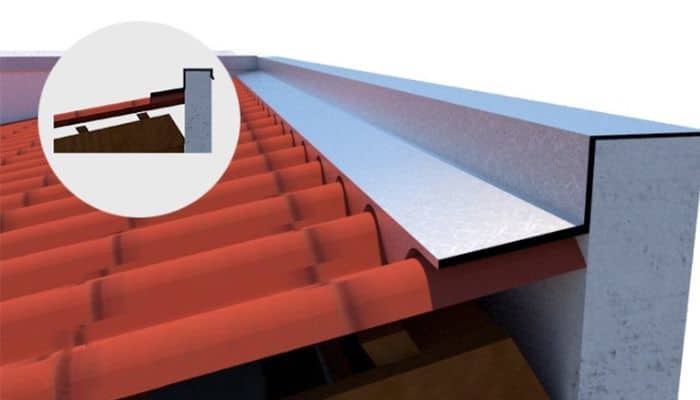 Este modelo de rufo consiste na união do rufo pingadeira e o rufo de parede encostado, tornando-se uma única peça, o que protege ainda mais a edificação de infiltrações e umidade.